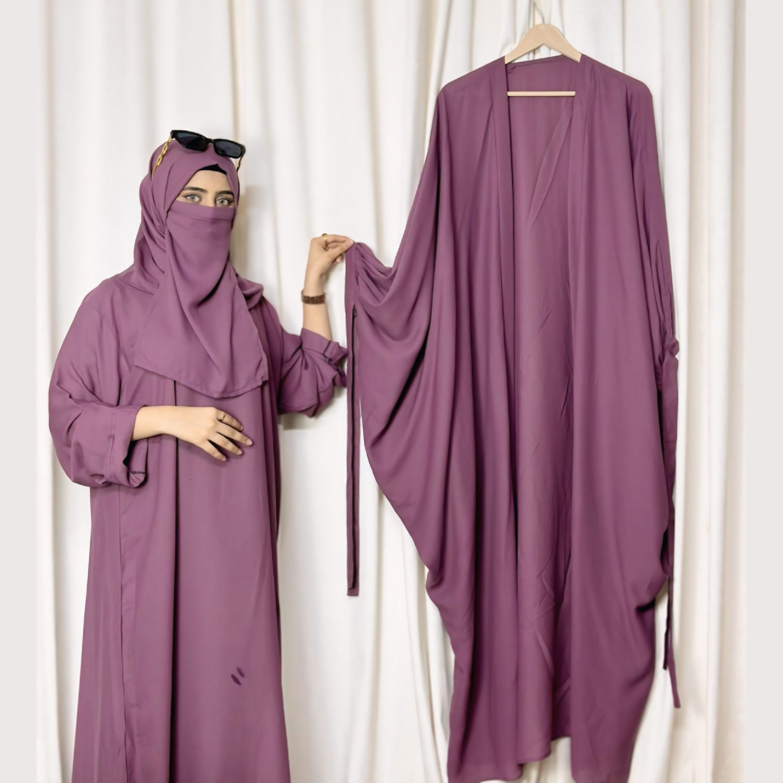 | Includes | Abaya + Coat + Hijab + Niqab |